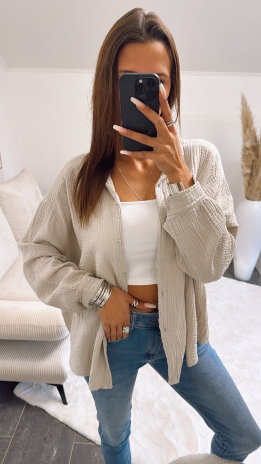 NORELLA | Satin Blouse in Silver with Deep V-Neck