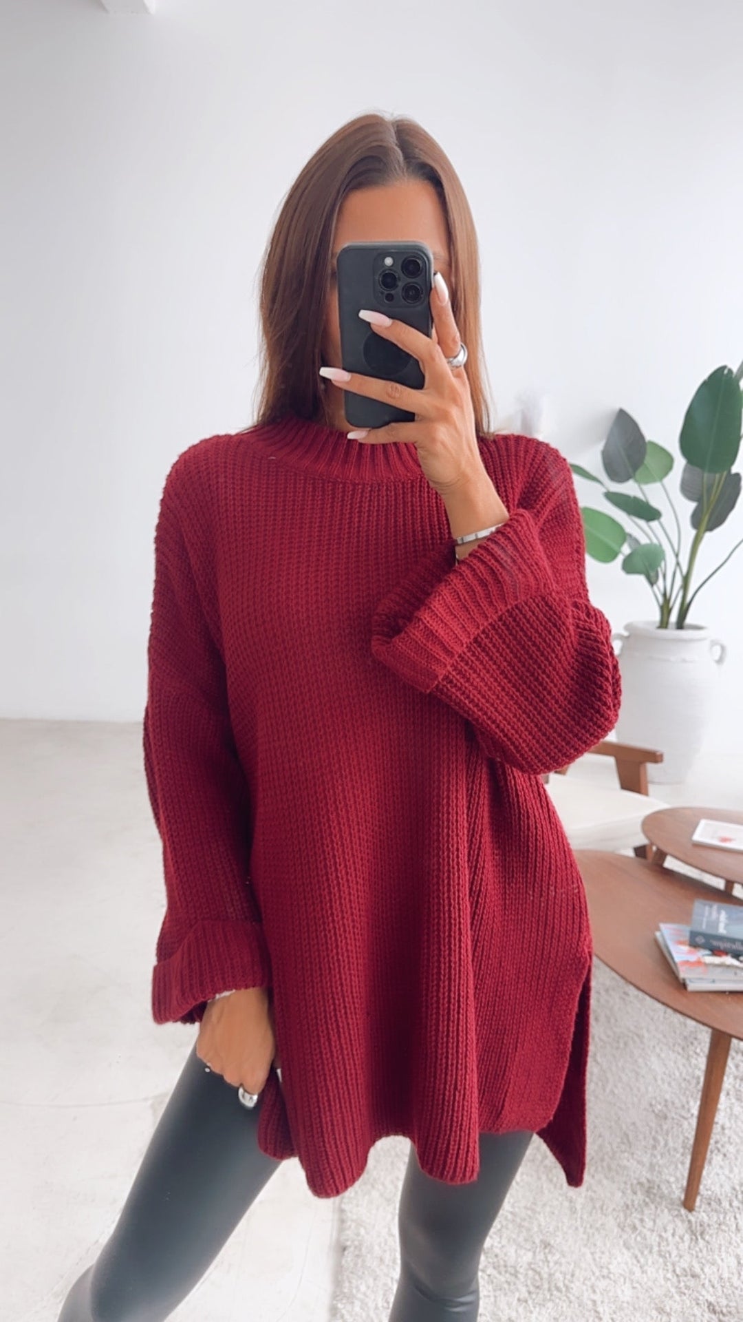 NORELLA | Oversized jumper with high collar and split / burgundy
