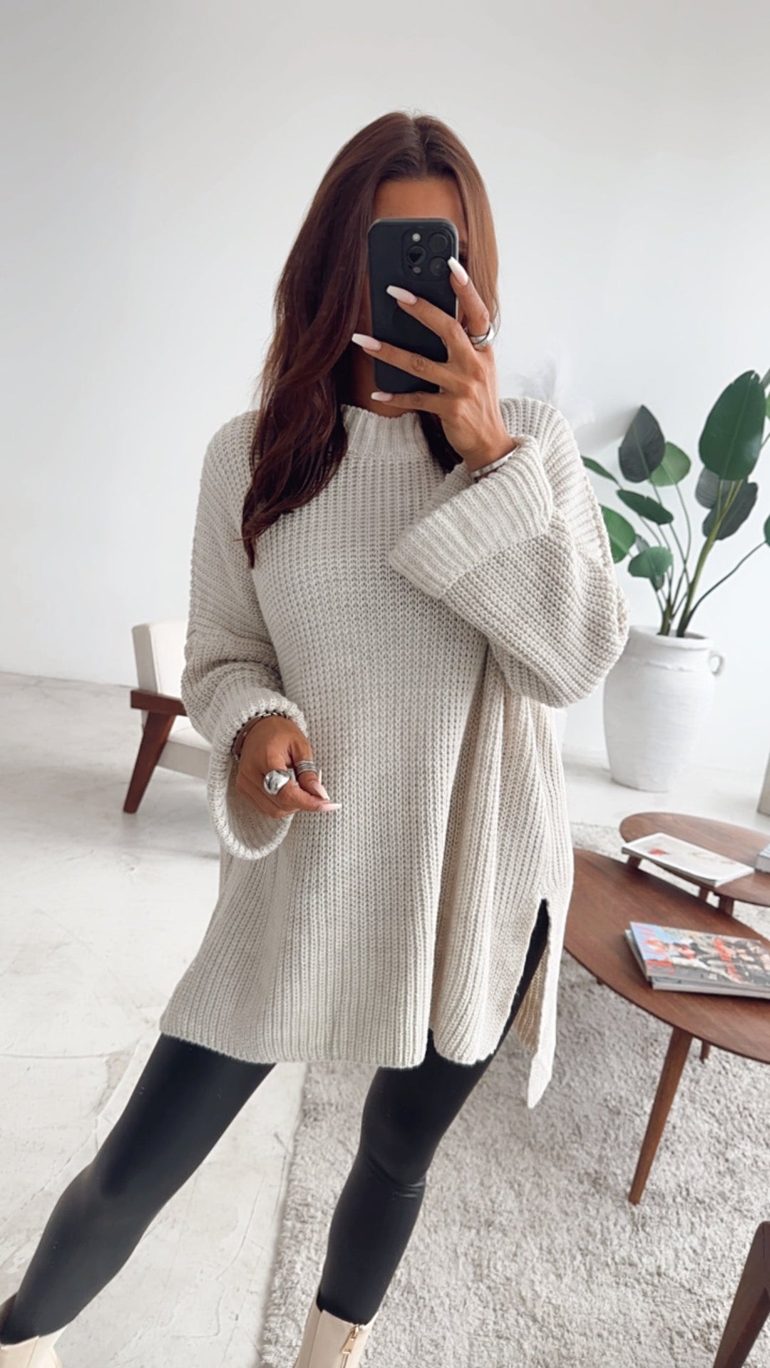 NORELLA | Oversized jumper with high collar and split / cappuccino